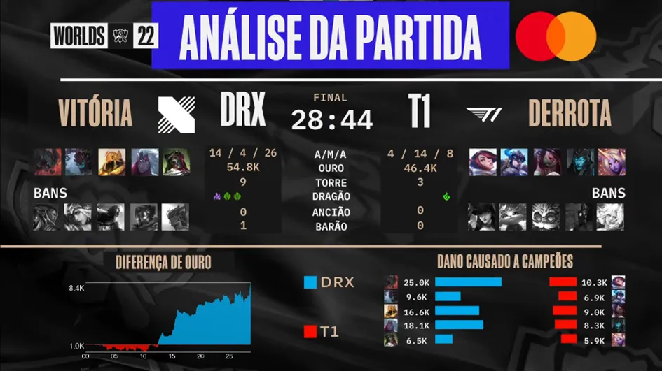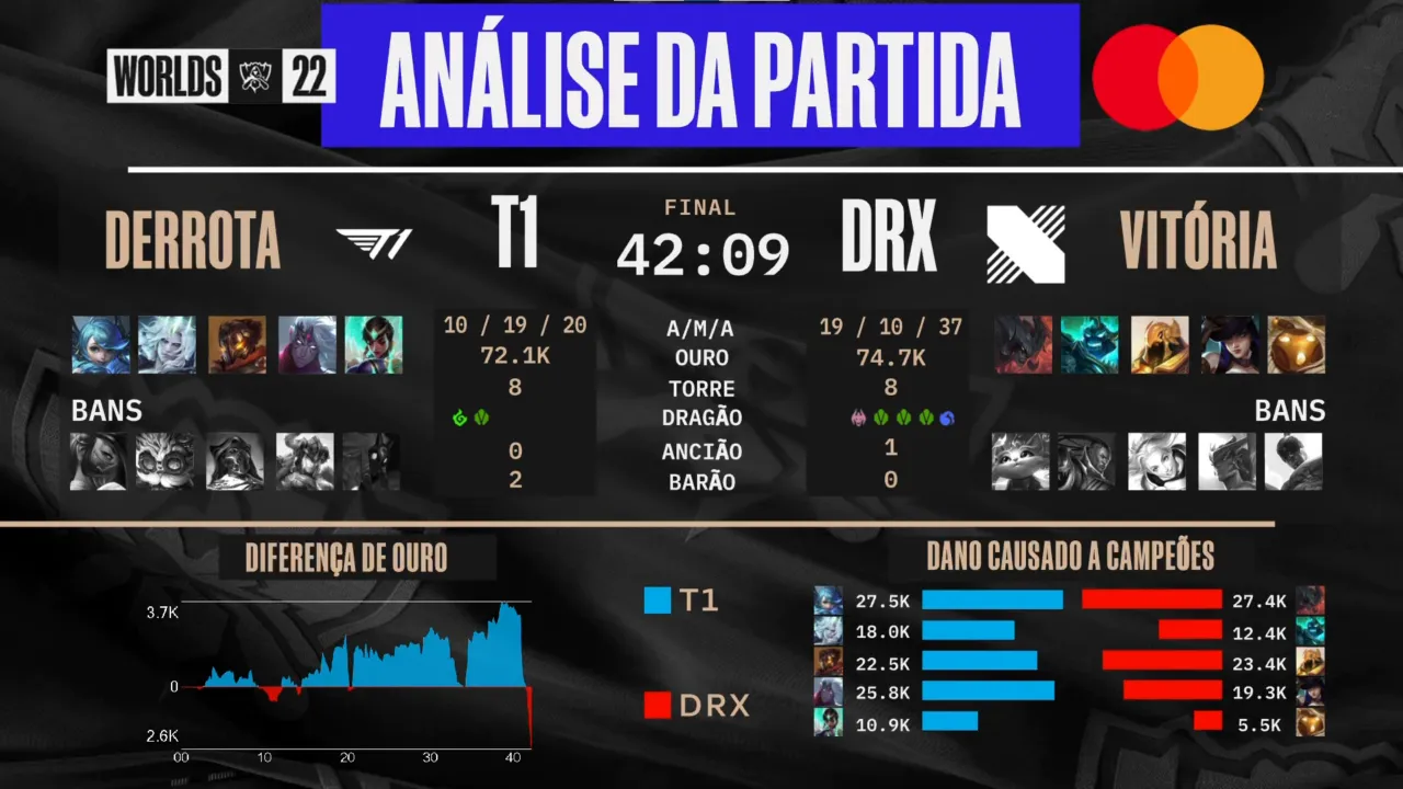 O jogo final da série melhor de 5 inicia com auspício para a T1 que joga no lado azul, mas a DRX mostrou que o seu buff era ser o time desacreditado.