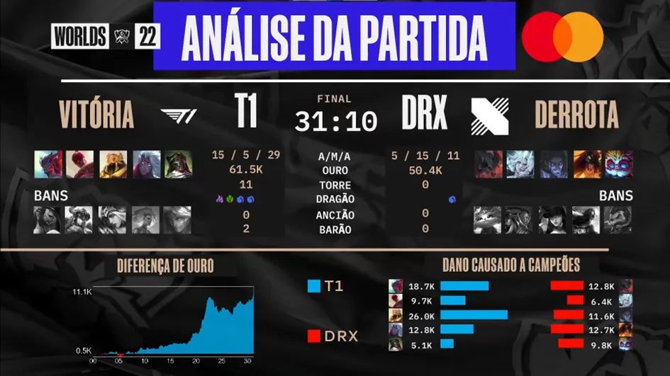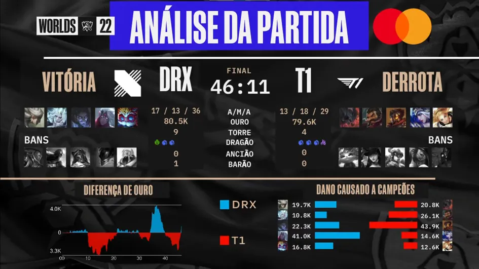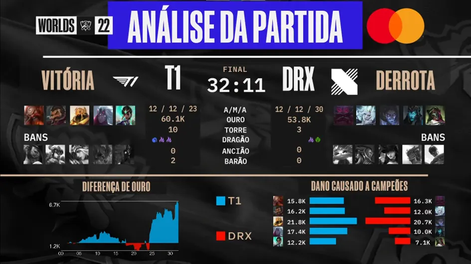 A final do campeonato mundial de League of Legends foi disputada entre duas equipes sul-coreanas e, no final da noite desse sábado e início da madrugada de domingo, teve a equipe da DRX como vencedora após disputar 5 jogos contra a tricampeã T1.